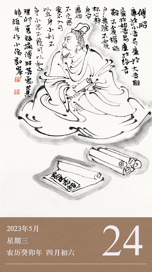這些我們耳熟能詳?shù)母裱?,出自一本關(guān)于如何為人處世的經(jīng)典書籍——《處世懸鏡》。此書分為九卷,分別以一個字總攬,被人們稱為人生的九字箴言。這九字分別是:識、行、止、藏、忍、信、曲、厚、舍?!短幨缿溢R》的作者,就是我們今天要介紹的南朝著名清官傅昭。