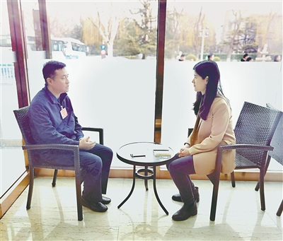 圖為3月5日,全國(guó)人大代表、中國(guó)航天科技集團(tuán)有限公司五院深空探測(cè)領(lǐng)域研制人員孫澤洲接受本報(bào)記者采訪。