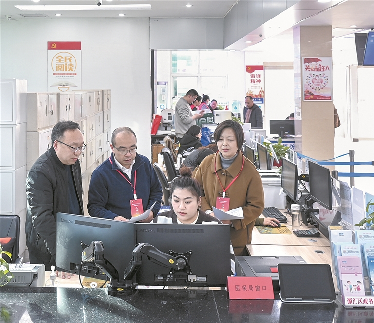 河南省漯河市源匯區(qū)紀委監(jiān)委聚焦醫(yī)保基金安全運行等關鍵環(huán)節(jié)開展專項整治,督促主管部門著力整治醫(yī)?;鸸芾碇刑搱竺邦I、騙取套取等違紀違法行為,嚴肅查處監(jiān)管失職失責及背后的不正之風和腐敗問題。圖為近日,該區(qū)紀委監(jiān)委工作人員到區(qū)行政服務中心醫(yī)保局窗口走訪核實相關情況。尤亞輝 攝