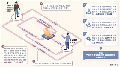 違法發(fā)放貸款罪。2013年10月至2016年1月,甲利用其擔(dān)任A市B區(qū)支行黨委委員、副行長的職務(wù)便利,接受多家公司和個(gè)人請托,在明知其借款用途不真實(shí)、貸款資料虛假或冒名貸款等情形下,要求下屬不嚴(yán)格調(diào)查、形成不實(shí)的調(diào)查報(bào)告,并作為分管副行長對相關(guān)公司和個(gè)人申請的貸款審核通過,違法發(fā)放貸款3670萬元,造成本金456.25萬余元未收回。