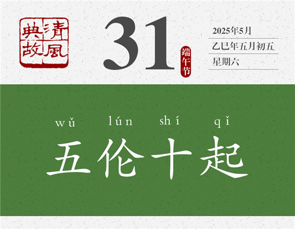 第五倫兄長(zhǎng)的兒子經(jīng)常生病,他晚上要起來(lái)十次去照料,這說(shuō)明他有私心。但是,他寧肯自己晚上起來(lái)十次去照料,也從未利用自己的職位或影響力讓別人代勞,這說(shuō)明他公私分明。后人遂以“五倫十起”為典,形容于私有情分,于公有原則。李瀚《蒙求》:“劉整交質(zhì),五倫十起。”劉整,南朝齊梁時(shí)人,任職中軍參軍,為人刻薄而貪婪。有一次,侄子在他家里住了十二天,他便親自上門(mén)去向寡嫂討米、索償飯費(fèi),寡嫂出門(mén)未歸,他竟然拿走了寡嫂家的車(chē)帷以作抵押。