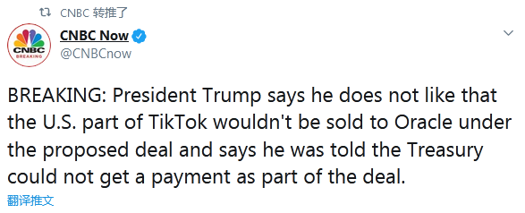 【環(huán)球網(wǎng)快訊】據(jù)CNBC剛剛消息,美國總統(tǒng)特朗普在16日的白宮新聞記者會上稱,他不喜歡目前甲骨文與TikTok目前擬定的合作協(xié)議,原因是TikTok的美國業(yè)務不會出售給甲骨文,而且他還被告知,美國財政部將無法從這次交易中拿到補償。