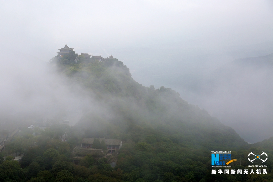 9月18日,崆峒山出現(xiàn)云海景觀。新華網(wǎng)發(fā)(吳希會(huì)攝)