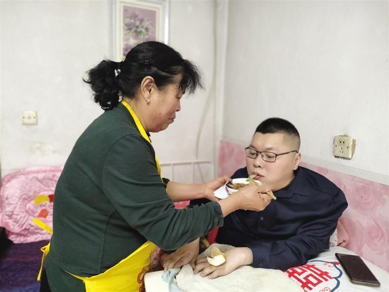 母親給呂元明喂飯