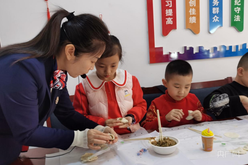 孩子們聽老師講傳統(tǒng)習俗體驗包餃子(央廣網(wǎng)發(fā) 唐欣 攝)