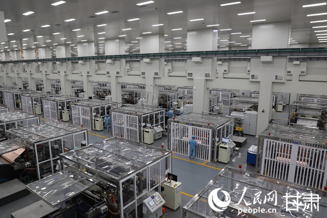 甘肅海亮新能源材料有限公司的生產車間內,工人們正在生產線上忙碌。人民網記者 黃帆攝
