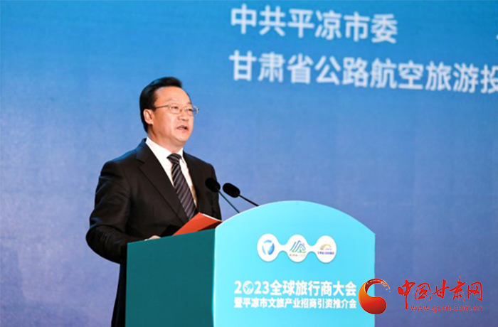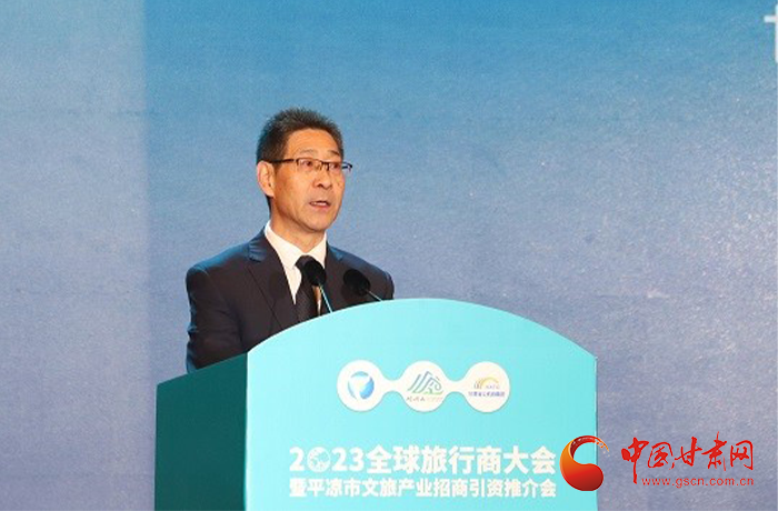 何效祖在致辭中說,平?jīng)鍪歉拭C向東開放的“門戶”城市,是風(fēng)景宜人的旅游城市,是甘肅布局的文旅康養(yǎng)基地和支撐“一核三帶”區(qū)域發(fā)展格局中的重要支點,擁有崆峒山、大云寺·王母宮、瑤池溫泉等眾多聞名遐邇的人文和自然景觀。今天,我們與平?jīng)鍪形姓⒅袊眯猩鐓f(xié)會、甘肅公航旅集團一道搭建平臺,誠邀各位嘉賓走進甘肅、深入平?jīng)?,組織開展宣傳推介、洽談合作、展示展銷、考察踩線等系列活動,就是要引導(dǎo)大家深度感知甘肅高質(zhì)量發(fā)展的強烈愿望,實地觸摸甘肅文旅如火如荼的生動實踐,誠懇表達(dá)隴原兒女“視企業(yè)家為最寶貴財富”的真誠合作和赤誠服務(wù)之心。我們衷心希望,廣大中外旅行商和文旅專家、文旅企業(yè)家以本次大會為契機,加強交流互鑒,深化務(wù)實合作,加大在甘投資力度,組織更多游客到甘肅觀光旅游,帶動更多優(yōu)質(zhì)文旅企業(yè)和項目落戶甘肅,合力譜寫甘肅文旅高質(zhì)量發(fā)展的嶄新篇章!