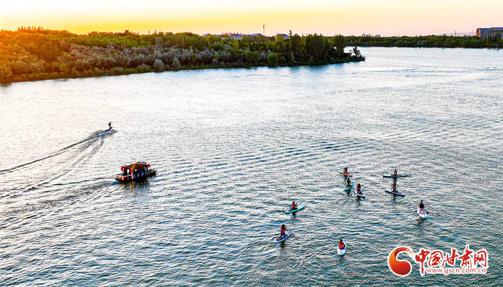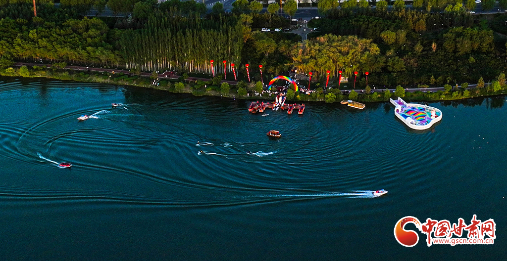 6月13日,張掖市甘州區(qū)“樂游甘州·水上嘉年華”觀光娛樂項目正式啟航,眾多游客體驗觀光畫舫、動力沖浪板、快艇滑翔傘等水上運動觀光項目。