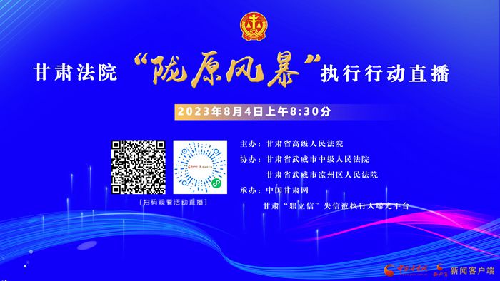中國(guó)甘肅網(wǎng)、甘肅“鼎立信”失信被執(zhí)行人曝光平臺(tái)歡迎廣大網(wǎng)友積極關(guān)注直播活動(dòng),共同努力在全社會(huì)形成關(guān)注宣傳執(zhí)行、鼓勵(lì)自動(dòng)履行、震懾拒不執(zhí)行的聲勢(shì),助力法治甘肅、誠(chéng)信甘肅建設(shè)邁上新臺(tái)階。