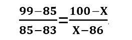 舉例說明:假如小王的地理科目原始成績(jī)?yōu)?5分,在當(dāng)年全省參加該科目考試的考生中位于前2.5%,根據(jù)上表,該成績(jī)位列A等級(jí),該等級(jí)的賦分區(qū)間為100-86分。根據(jù)考生原始成績(jī)的分布,可知A等級(jí)的原始分?jǐn)?shù)區(qū)間(假設(shè)為99-83分),那么小王地理科目的賦分成績(jī)(X)可通過如下公式計(jì)算: