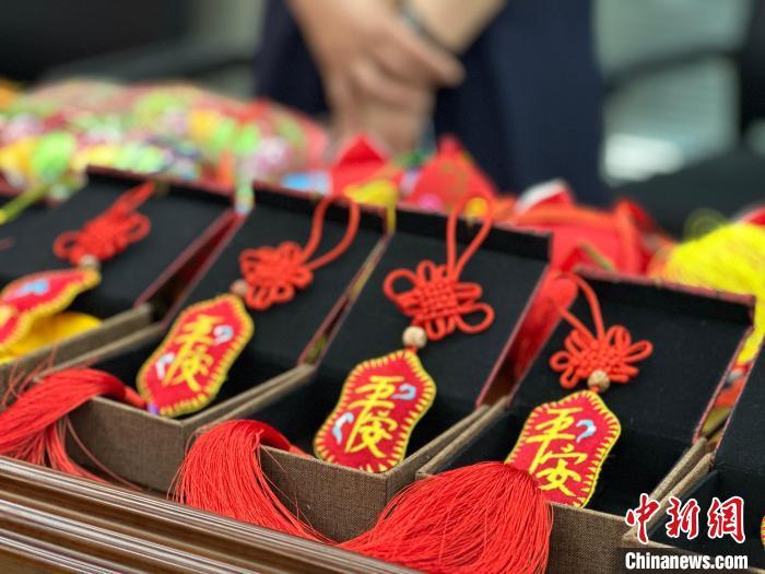 圖為發(fā)布會(huì)現(xiàn)場(chǎng)慶陽(yáng)香包展示。楊娜 攝