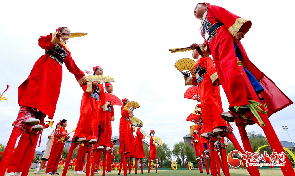 9月5日,在張掖市甘州區(qū)大成學校體育場上,舞龍、舞獅、踩高蹺、扇子舞、威風鑼鼓、腰鼓、武術等38個社團依次進行成果展演,師生們在傳承中華民族的優(yōu)秀文化,探索向美而行的新路徑中,歡慶即將到來的第40個教師節(jié)。