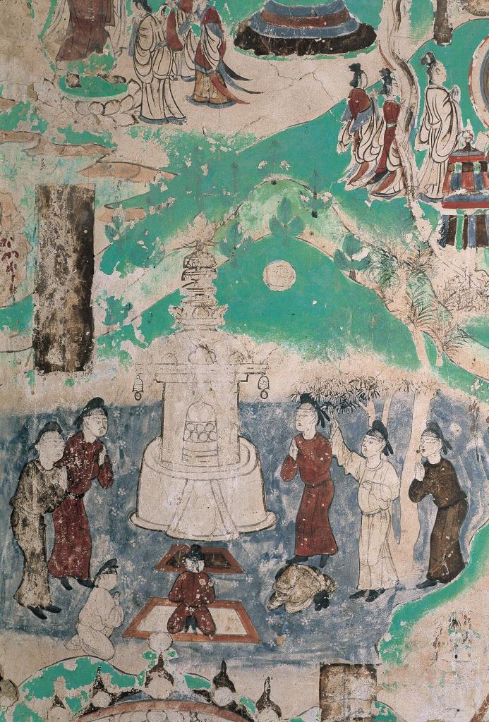 莫高窟第103窟-佛頂尊勝陀羅尼經(jīng)變之拜塔-盛唐