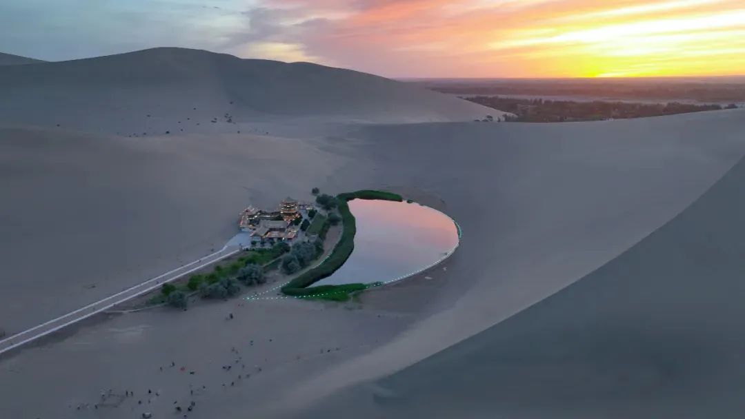 2024年6月6日拍攝的鳴沙山月牙泉。新華社記者 郎兵兵攝