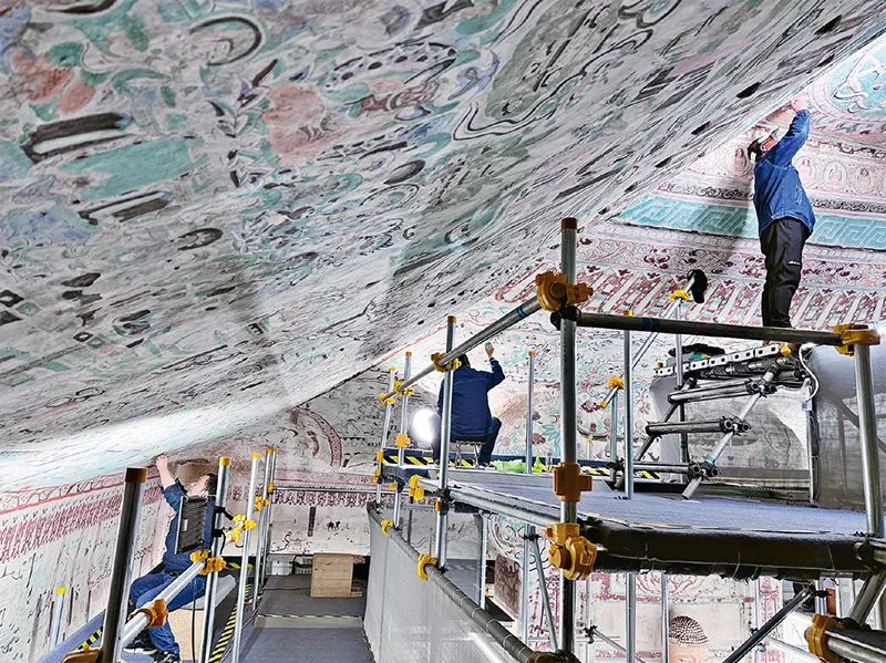 圖為2024年拍攝的莫高窟第55窟文物修復現(xiàn)場。來源:敦煌研究院供圖