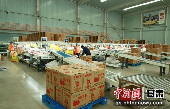 圖為寧縣慶新果業(yè)車間分揀蘋果。