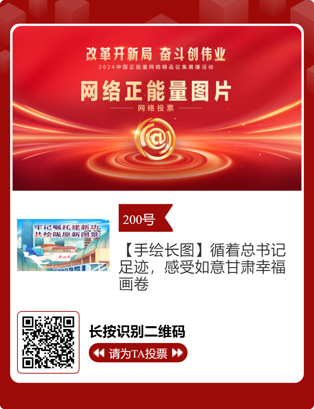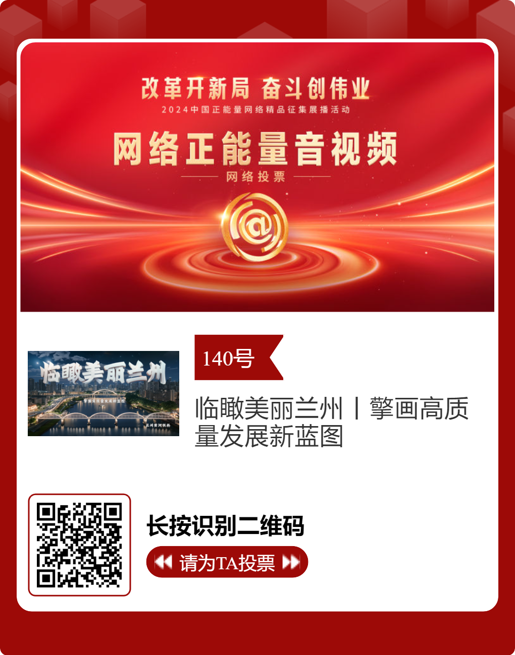 2024中國正能量網(wǎng)絡(luò)精品,蘭州入圍作品邀您投票!