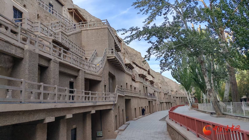 走出莫高窟,暖陽下的九層樓像戈壁灘上的一幅“中國(guó)畫”。壁畫不會(huì)說話,卻用顏色與線條告訴世界:何以中國(guó)?在敦煌,在墻上,在人們仰頭凝視壁畫的那一刻,中國(guó)已然數(shù)千年,且從未褪色。