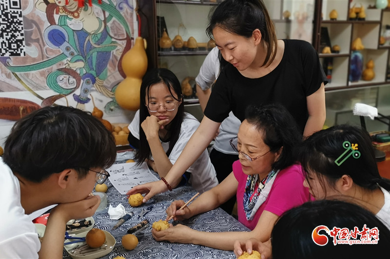 她還走進(jìn)蘭州開放大學(xué),為熱愛刻葫蘆的老年人手把手地傳授技藝,耐心細(xì)致地指導(dǎo)他們?nèi)绾卧谛⌒〉暮J上刻畫出精美的圖案。