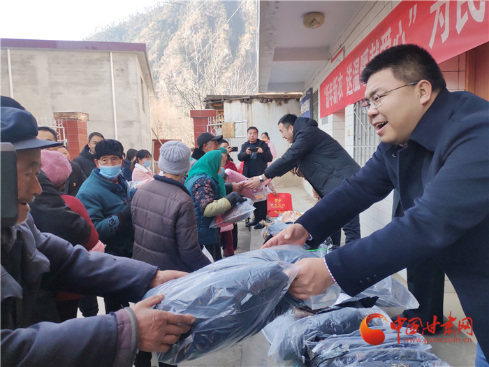 舟曲縣委副書記、縣長(zhǎng)舒時(shí)光為群眾送新衣