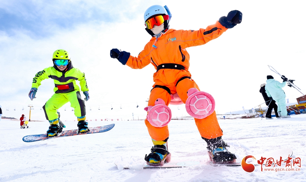 1月24日,在張掖肅南裕固族自治縣的康樂草原祁連山滑雪場,冰雪愛好者和游客攜孩子一同迎風馳雪,樂享冰雪運動的激情。他們在運動中強健體魄、磨煉意志,同時迎接即將到來的新春。