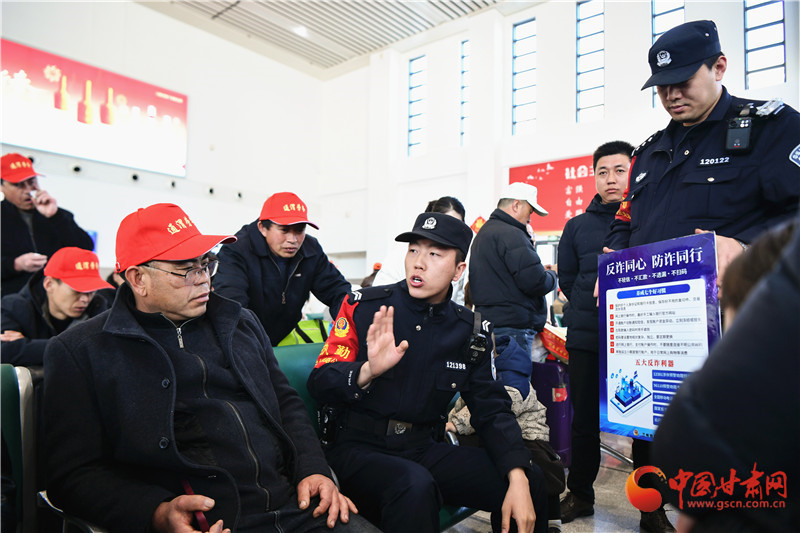 “出門在外,凡是遇到借款、匯款、轉(zhuǎn)賬等問題時,一定要核實清楚對方的身份,可以撥打?qū)Ψ降某S锰柎a,或者使用視頻聊天仔細詢問后再做決定,切不可心急將錢打給對方,防止被詐騙造成經(jīng)濟損失…”定西北站派出所民警李凱在候車大廳向務(wù)工返崗人員細細叮囑著。