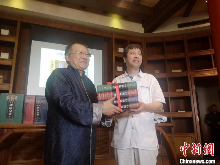 中新網(wǎng)杭州8月26日電(童笑雨)8月26日,浙江圖書館(下稱“浙圖”)向中國國家圖書館(下稱“國圖”)贈(zèng)送影印精裝本文瀾閣《四庫全書》。據(jù)悉,影印本文瀾閣《四庫全書》入藏國圖,尚屬首次。浙江圖書館館長(zhǎng)褚樹青表示,文瀾閣本《四庫全書》重新回到北京,是浙江人民的回贈(zèng),也是一次文化交流。