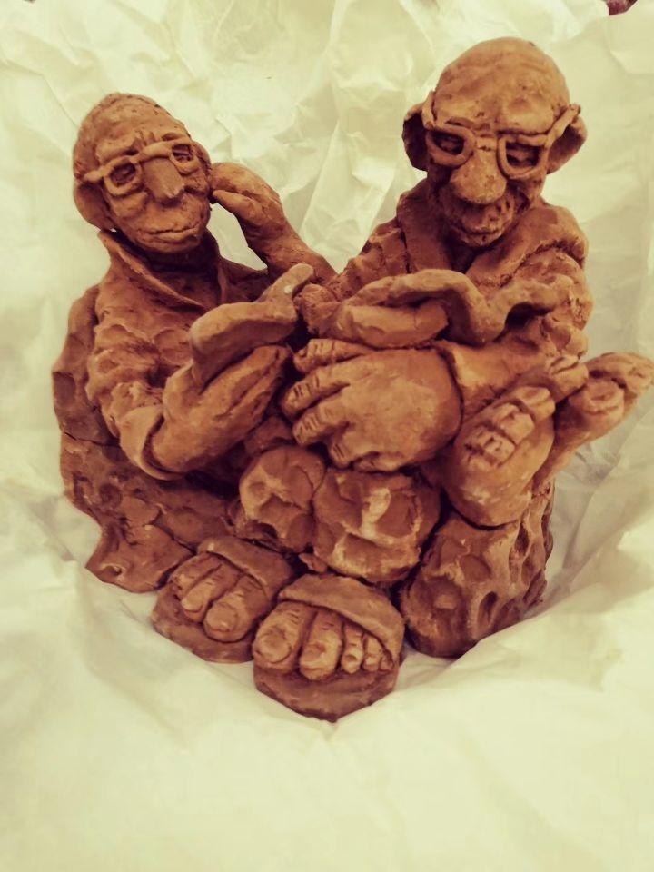 一個人的藝術(shù)成就,在多個領(lǐng)域里綻放,是一件難以置信的事情。劉老師的泥巴,玩出了她自己的風(fēng)采。三盆泥巴,事先由主辦方備制好。像和面一樣,醒泥巴,摔泥巴,軟硬適宜。人還沒到合作,泥巴早已備好。
