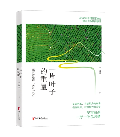 王國平報告文學《一片葉子的重量——脫貧攻堅的“黃杜行動”》寫的黃杜村,位于浙江省湖州市安吉縣,那里曾經是個貧困山村。“一片葉子富了一方百姓”,在擺脫貧困的道路上,村民們艱苦奮斗,使黃杜村成為安吉白茶的重要產地,家鄉(xiāng)面貌煥然一新。