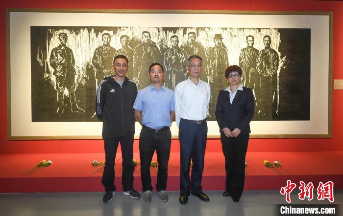 6月5日,在浙江杭州舉行的《瞬間:重返浙江紅色現(xiàn)場》新書發(fā)布現(xiàn)場,寧波市奉化區(qū)委黨校教師裘是等四人在一幅畫作前拍了一張合影。