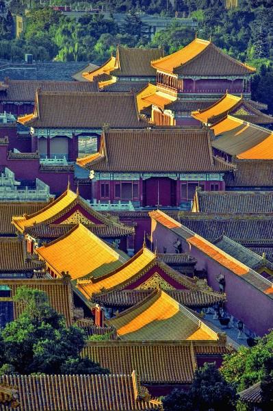 站在景山上俯瞰故宮建筑群,朝陽之下,一片金黃。在古代,這種色彩是屬于皇家的,如今則可以被每一個普通人駐足欣賞。