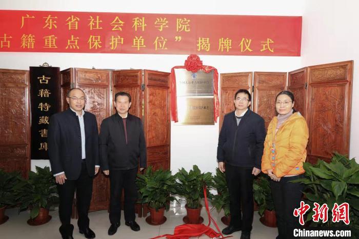 中新網(wǎng)廣州12月29日電 (記者 程景偉)記者29日從廣東省社會(huì)科學(xué)院獲悉,該院成功入選為“全國(guó)古籍重點(diǎn)保護(hù)單位”,并于近日舉行了揭牌儀式。