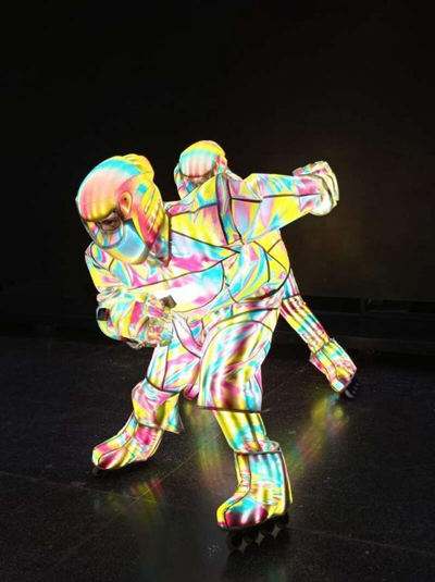 “未來(lái)冰球隊(duì)”演員肖遙和隊(duì)友身著表演服訓(xùn)練。受訪者供圖