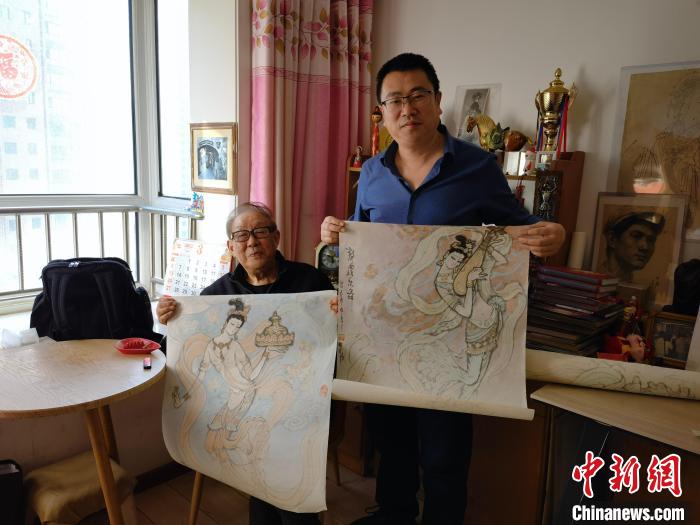 3月上旬,《絲路花雨·誕生》作者陳曉斌(右)拜訪今年86歲的舞美設(shè)計師李明強(右)老先生?!⊥跸让稀z