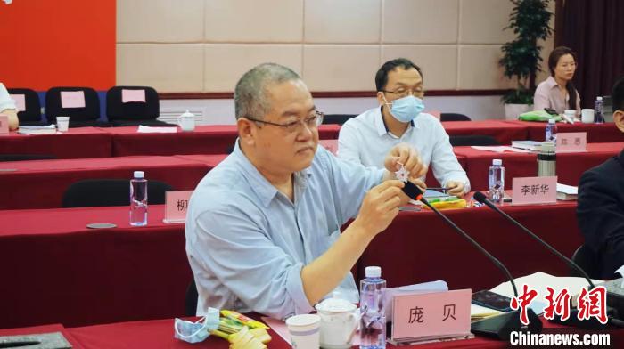 作家龐貝在廣州研討會(huì)現(xiàn)場(chǎng)展示1933年紅星獎(jiǎng)?wù)隆∪嗣裎膶W(xué)出版社供圖