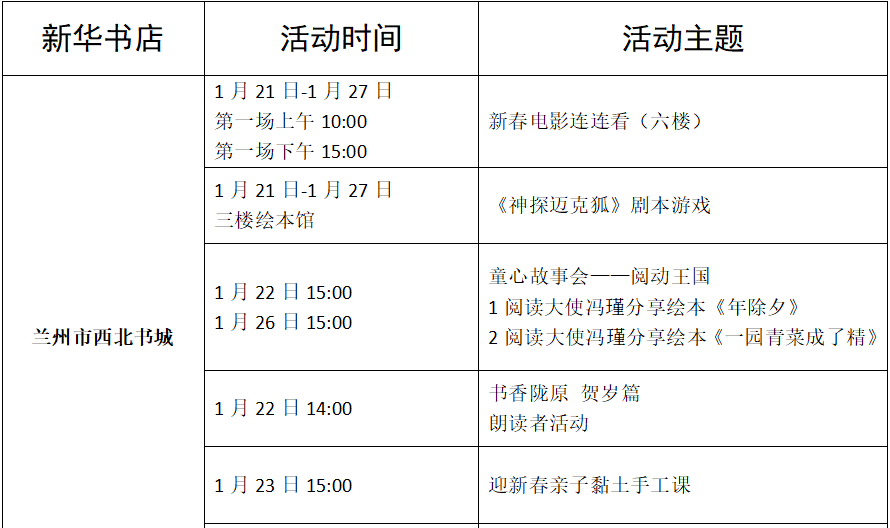 收藏!甘肅省各地新華書店春節(jié)期間活動來了(附表)