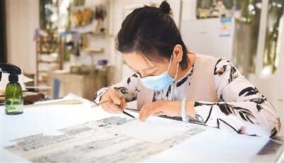 安徽博物院文物科技保護中心紙質(zhì)文物修復室的工作人員對古籍文物進行修復。新華社記者 周 牧攝