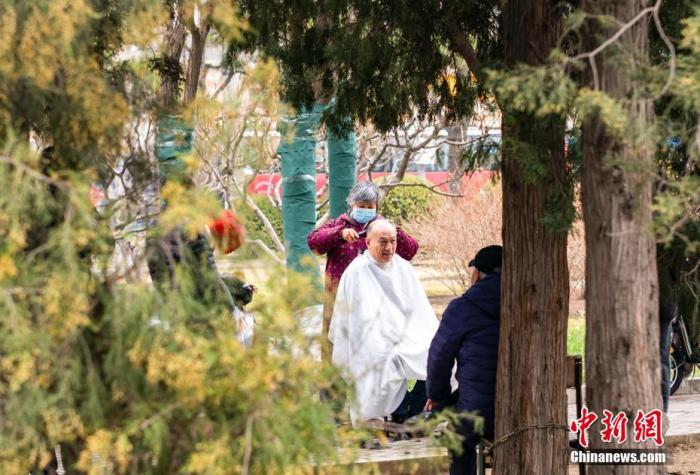 資料圖:北京市民在街頭休閑區(qū)理發(fā)。當天是中國農(nóng)歷二月初二,民間有“二月二,剃龍頭”的傳統(tǒng)習(xí)俗,寓意辭舊迎新,帶來好兆頭。 中新社記者 侯宇 攝