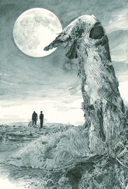 一輪滿月在大漠天空中懸浮著,兩個(gè)人行至遠(yuǎn)方的沙地,并肩好似在暢談著什么??窃凇蹲x者》2019年第五期的這幅插圖,出自魯迅美術(shù)學(xué)院教授李晨之手,他以寫(xiě)實(shí)的素描手法為陳忠實(shí)的文章《毛烏素沙漠的月亮》配圖,畫(huà)面細(xì)膩而充滿想象空間。