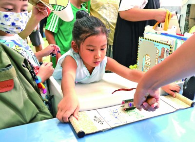 8月20日,國家圖書館少年兒童館舉辦“朱夏國風(fēng)日”傳統(tǒng)文化沉浸式體驗(yàn)活動(dòng),為小讀者創(chuàng)造別樣的閱讀體驗(yàn)。同時(shí),國家圖書館舉辦的多個(gè)展覽也成為孩子們避暑長知識(shí)的好去處。