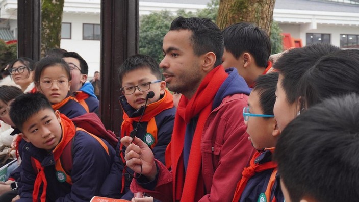 走出場館,中外青年圍坐在雷鋒紀(jì)念館外的長廊暢聊雷鋒精神。在分享初到中國時迷路,被身邊一位“活雷鋒”幫助的故事時,來自阿爾及利亞的留學(xué)生名善深有體會地說到:“真正的善行是發(fā)自內(nèi)心、純粹無私的。”交流中,不一樣的面孔也吸引了來自株洲市荷塘小學(xué)小朋友們的關(guān)注,在文化擺渡者志愿服務(wù)隊的翻譯下,留學(xué)生們與小朋友們打破了語言的壁壘,實現(xiàn)了關(guān)于雷鋒精神內(nèi)涵的無障礙交流。