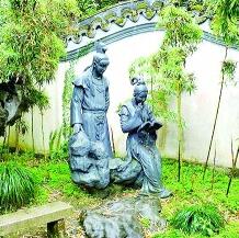 上海大觀園內(nèi)“寶黛共讀西廂”雕塑 資料圖片