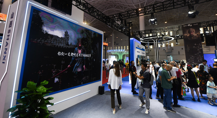 數(shù)博會上,國產(chǎn)游戲《黑神話:悟空》備受矚目。山西展團以游戲中“悟空”路線為主題,重點展示了一批介紹山西古建筑、歷史文化遺產(chǎn)的出版物,“悟空拍照區(qū)”成了“熱門打卡地”。
