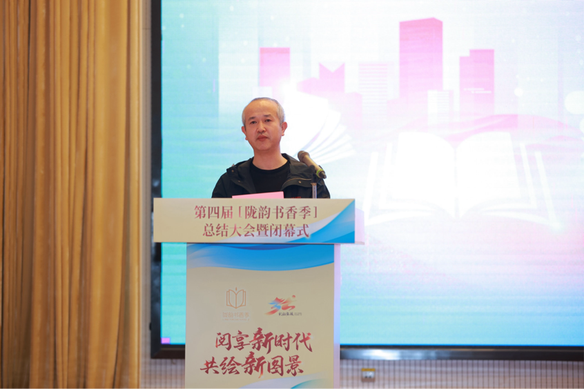 肖學(xué)智館長(zhǎng)回顧并總結(jié)了第四屆“隴韻書香季”舉辦的概況和取得的成效。他表示,“今年‘隴韻書香季’期間,我們聯(lián)動(dòng)全省多家圖書館,開展了30大項(xiàng)共百余場(chǎng)閱讀推廣活動(dòng),并將部分重點(diǎn)活動(dòng)帶向基層圖書館,擴(kuò)大書香季‘朋友圈’,共謀‘大家’發(fā)展;今年,我們更加重視品牌宣傳,借助社會(huì)名家、網(wǎng)絡(luò)達(dá)人的力量,喜提多個(gè)‘熱點(diǎn)’和‘熱搜’;今年,隴韻書香季系列活動(dòng)榮獲多個(gè)獎(jiǎng)項(xiàng),讓我們?cè)诠膭?lì)與肯定中堅(jiān)定信心。未來(lái)我們將繼續(xù)與各兄弟單位、媒體、全省讀者朋友們攜手前行,用高質(zhì)量的閱讀推廣發(fā)展成果助力“書香隴原”建設(shè)。”