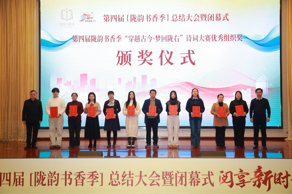 閉幕式上公布并表彰了“優(yōu)秀閱讀推廣活動(dòng)案例獎(jiǎng)”獲獎(jiǎng)人員、“‘穿越古今·夢(mèng)回隴右’詩(shī)詞大賽優(yōu)秀組織獎(jiǎng)”獲獎(jiǎng)人員、“‘閱·見西部’第一季——‘詩(shī)歌里的家鄉(xiāng)’(甘肅賽區(qū))最佳人氣獎(jiǎng)和優(yōu)秀獎(jiǎng)”獲獎(jiǎng)人員。