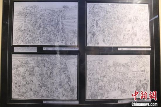 蘭州鋼筆畫(huà)愛(ài)好者周新平勾勒了數(shù)組關(guān)于鄉(xiāng)村記憶的鋼筆畫(huà),其中,《隴西臘月圖》是他歷時(shí)三個(gè)多月,手繪了200多村民,完成的一幅舊時(shí)農(nóng)民過(guò)年趕集的熱鬧圖景:賣(mài)糖葫蘆的小販、剪紙賀春的手藝人、趕車(chē)挑擔(dān)的趕集人……周新平說(shuō),他很怕“集市文化”將來(lái)被人們遺忘,用鋼筆記錄下來(lái),留住記憶里的“年味”以感悟鄉(xiāng)愁。