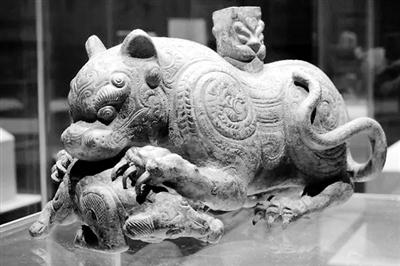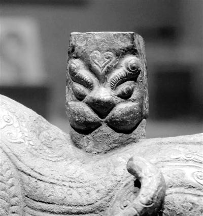 不僅造型夸張,在雕塑的外形紋飾上也用各種線圈、各種線條,突出表現(xiàn)了猛獸的兇猛強悍,給人一種望而生畏的感覺。