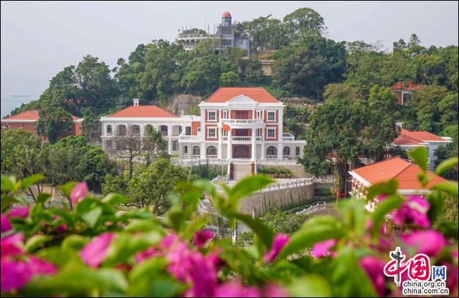 如果有這樣一座島嶼——遠(yuǎn)處是一方寧靜的藍(lán)天,近處是一片幽深的綠樹,藍(lán)與綠之間,是逶迤而去的清水紅磚……極目遠(yuǎn)眺,只見她濃淡相宜、遠(yuǎn)近相安,仿佛一幅肅穆祥和的印象派油畫;細(xì)細(xì)聆聽,似乎還有一支悠揚(yáng)的鋼琴曲,在伴隨海鷗與濤聲,不時(shí)從畫中飄來……
