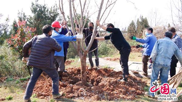 合力扶苗、揮鍬填土、踩實(shí)壓緊、提桶澆水……3月10日,在湖南省武岡市荷塘村義務(wù)植樹基地,黨員群眾分工協(xié)作、相互配合,每個(gè)環(huán)節(jié)都一絲不茍。經(jīng)過一上午的忙碌, 一棵棵櫻花樹迎風(fēng)挺立,把山頭裝點(diǎn)得綠意盎然。今年,武岡繼續(xù)啟動(dòng)55個(gè)美麗鄉(xiāng)村綠化美化建設(shè),繼續(xù)改善城鄉(xiāng)環(huán)境,提高人民群眾的獲得感和幸福感,為爭創(chuàng)省級(jí)森林城市“添磚加瓦”。