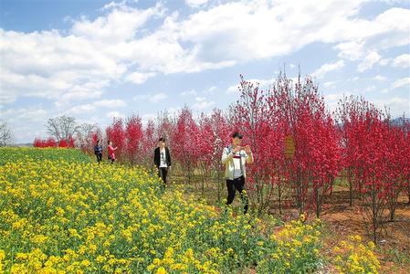 郭坪的麗桃花多為紅色,那紅,于深紅中又透著一種清麗的粉,使繁盛的花朵,飽滿中又呈現(xiàn)出一種吹彈可破的輕盈,而沁人心脾的花香,又使人忍不住就想把臉埋在繁花間,把花香全都嗅進(jìn)五臟六腑。此時(shí),花株猶如無數(shù)把紅傘,傘下,五顏六色的衣裳與花樹相映成趣。樹上的花對著人笑,地上的人對著花笑。“去年今日此門中,人面桃花相映紅。人面不知何處去,桃花依舊笑春風(fēng)。”崔護(hù)的詩也不知不覺從腦海里跳將出來。傳說詩人崔護(hù)的這首《題都城南莊》寫的是,他進(jìn)京考進(jìn)士落第,一個(gè)人悵然走到京城南郊。走得口渴到一戶人家討水,一美麗女子站在庭院的桃花下,嬌羞地把一瓢水遞給了他,那女子的美貌驚艷了詩人的眼睛。第二年春天崔護(hù)復(fù)來南莊,然而那座庭院里,桃花依然如故,而樹下卻不見了佳人的芳蹤,于是留下此詩。面對花海,也許你會突發(fā)奇想,如果崔護(hù)能在詩里復(fù)活,想必他一定也會來郭坪的麗桃花海走一遭,那么這首詩一定會是另外的意境了。因?yàn)榇藭r(shí)的花樹下,滿是顧盼生輝的佳人,也不知崔護(hù)要題詩給哪一位女子了。